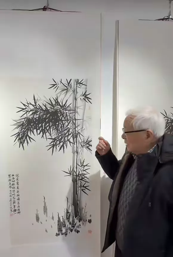 展览现场,故宫博物院研究员单国强对宋永柱的作品给予了高度评价:“其墨竹精准把握了传统画派的笔墨法度,又融入了当代审美视角,竹之‘坚’与园之‘韵’相映,是传统书画与文化场景的巧妙融合。” 而观展者也被作品中 “竹叶舒卷藏风骨,墨色浓淡见情怀” 的意境打动,认为其作品既再现了文人画的雅致,又赋予了园林主题新的精神内涵。